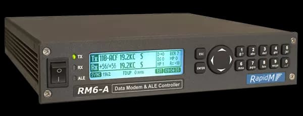 The RM6-A features a built-in 2G ALE controller option and supports MIL-STD-188-110A/B, STANAG 4539 and related modems, as well as MIL-STD-188-141, App A (2G ALE) and App B (Linking Protection). It also supports the RAP1/RIPC and STANAG 5066 Annex E (ASCII) control protocols and is designed to operate in conjunction with an external STANAG 5066 ARQ server.